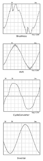 Brushless: Among the most common in the industry because of their inexpensive construction, but have the least reliable voltage control. Brushless generators can't react to a changing load, either producing low power (a brownout) or high power. Fluctuation of this nature can casue equipment damage.