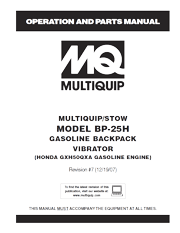 This backpack vibrator is ideal for steel vibrator heads, up to 2-5/8" in diameter and rubber heads up to 2-3/4" in diameter. Multiquip flex-shaft vibrators are designed for work in medium to high-slump concrete. Typical applications include small pours, slabs, driveways, stem walls and footings.