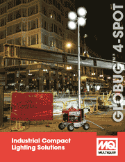 The new GloBug 4-Spot LED Light Tower is the ultimate portable lighting source when compact and efficient lighting is required. The small footprint allows transportation of several units in small delivery vehicles. No tools are required to adjust the lamps for quick deployment. The GB43LED produces 152,000 lumens of clear, clean LED lighting.