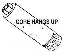 Possible Cause: Core barrel is dented because of hammering on it to remove previous hung up cores. Remedy: Repair the barrel (if possible). Increase water flow.
