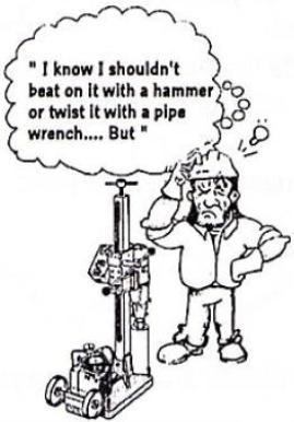 Possible Cause: Drill rig is not properly anchored. Remedy: There are three ways of anchoring a core rig. STANDING ON IT IS NOT ONE OF THEM! This quick and dirty method damages the bit and the rig as well as dramatically slowing the drilling process.